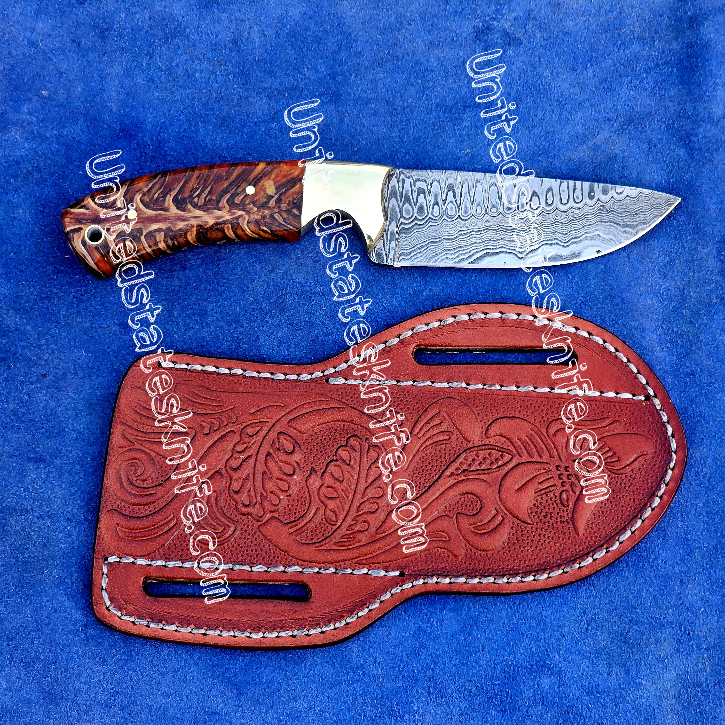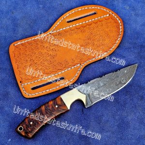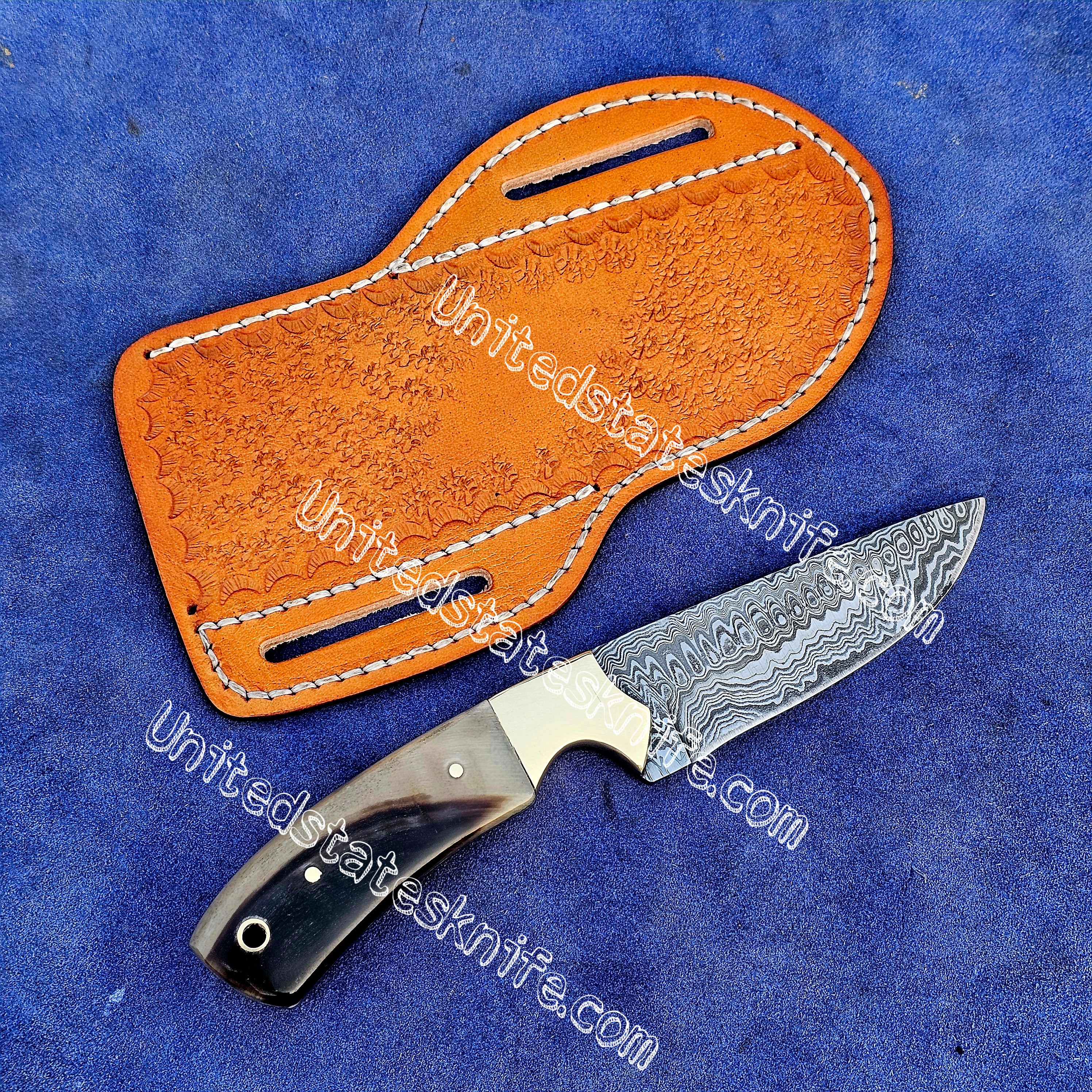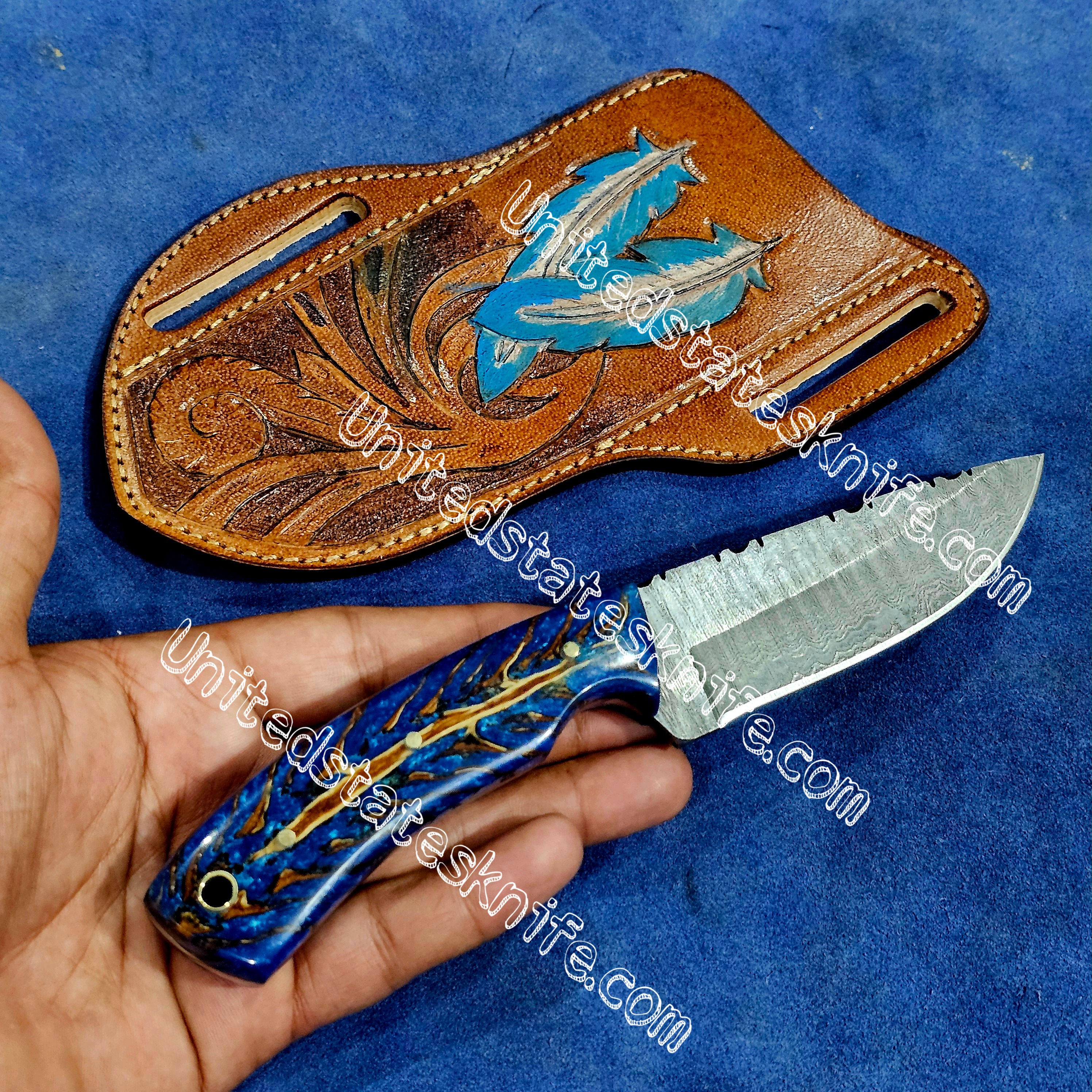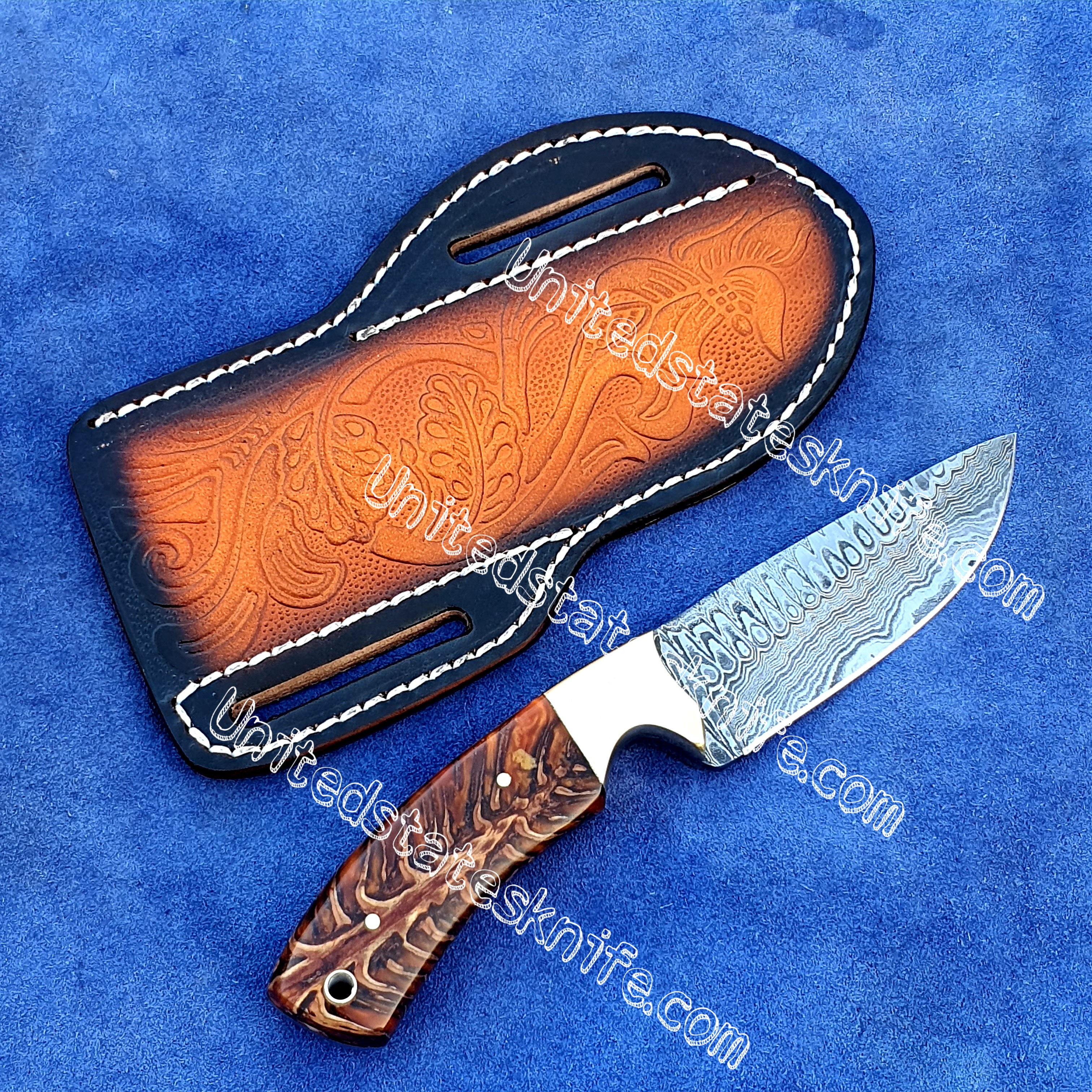 Custom made Damascus Steel cowboy and skinner knife