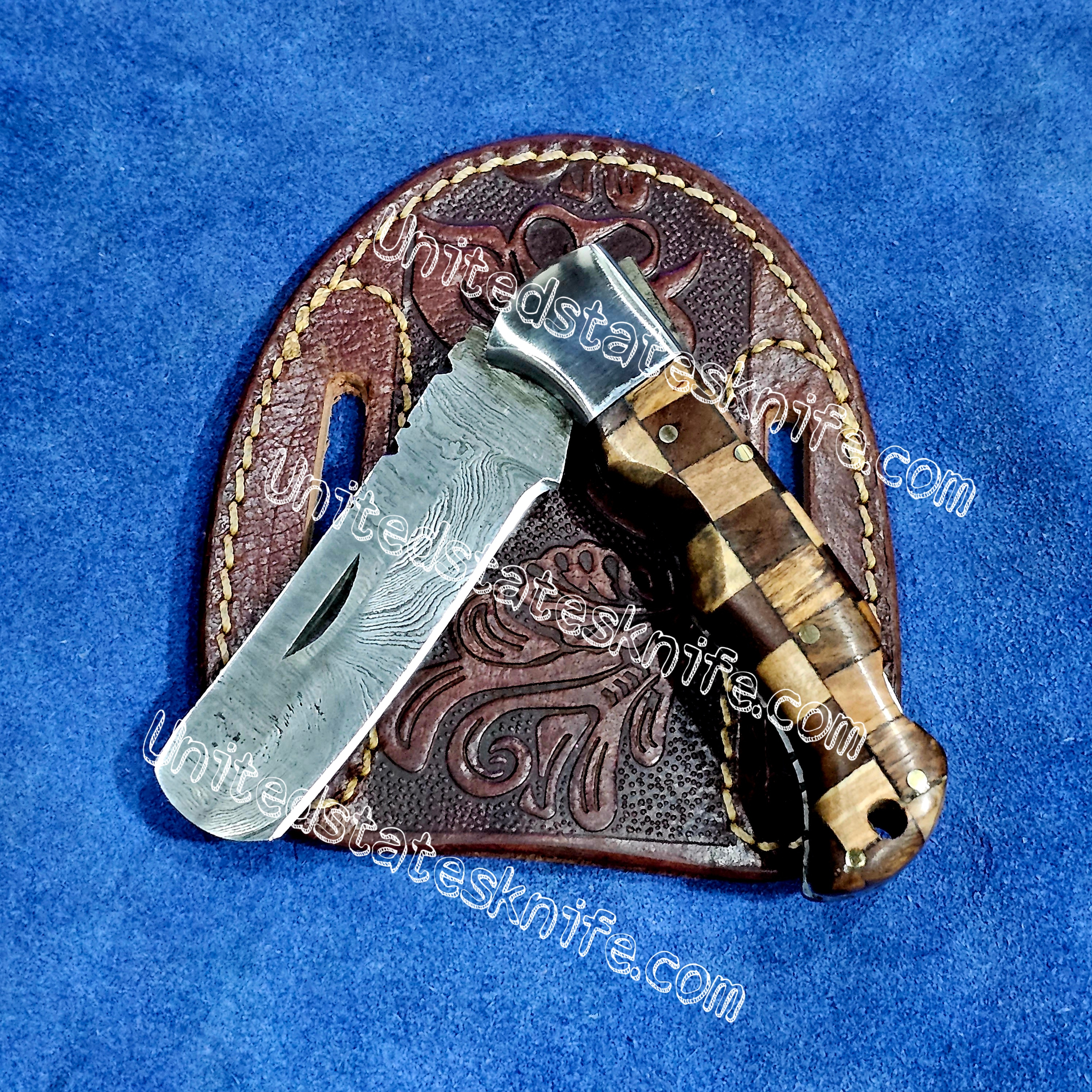 Custom Made Damascus Steel cowboy bull cutter folding knife