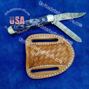 Product Tag: Custom Made Damascus Steel cowboy trapper knife