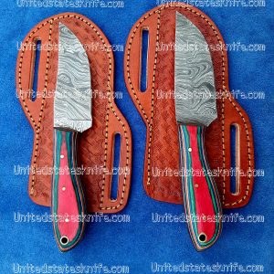 Custom Made Damascus Steel Fixed Blades COWBOY and SKINNER knife.