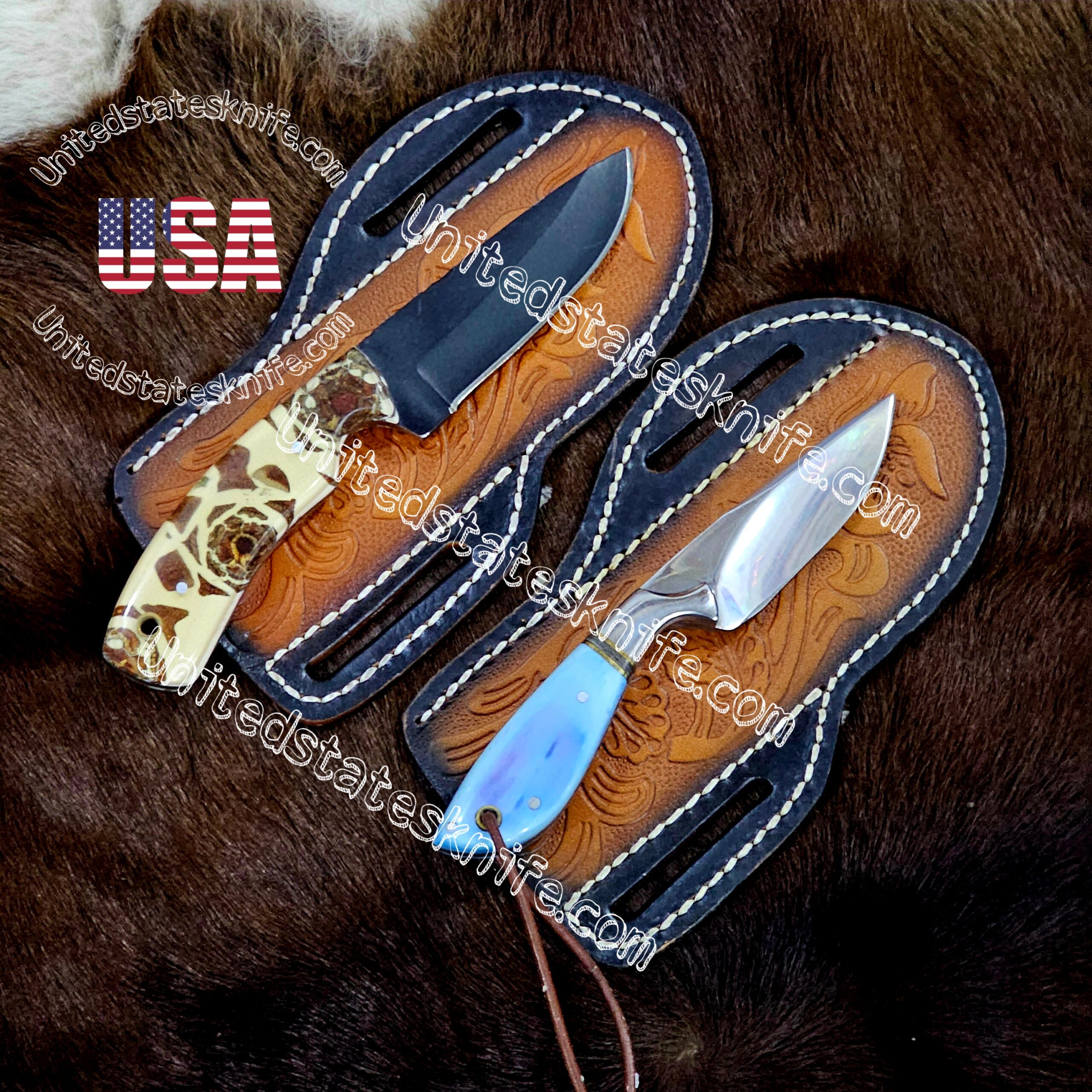 Custom handmade 1080 and 1095 steel with black powder coated cowboy and skinner knives.overall length 7″8″inches.also comes with leather sheaths.sharp edges and still long time… I’m also take custom orders…