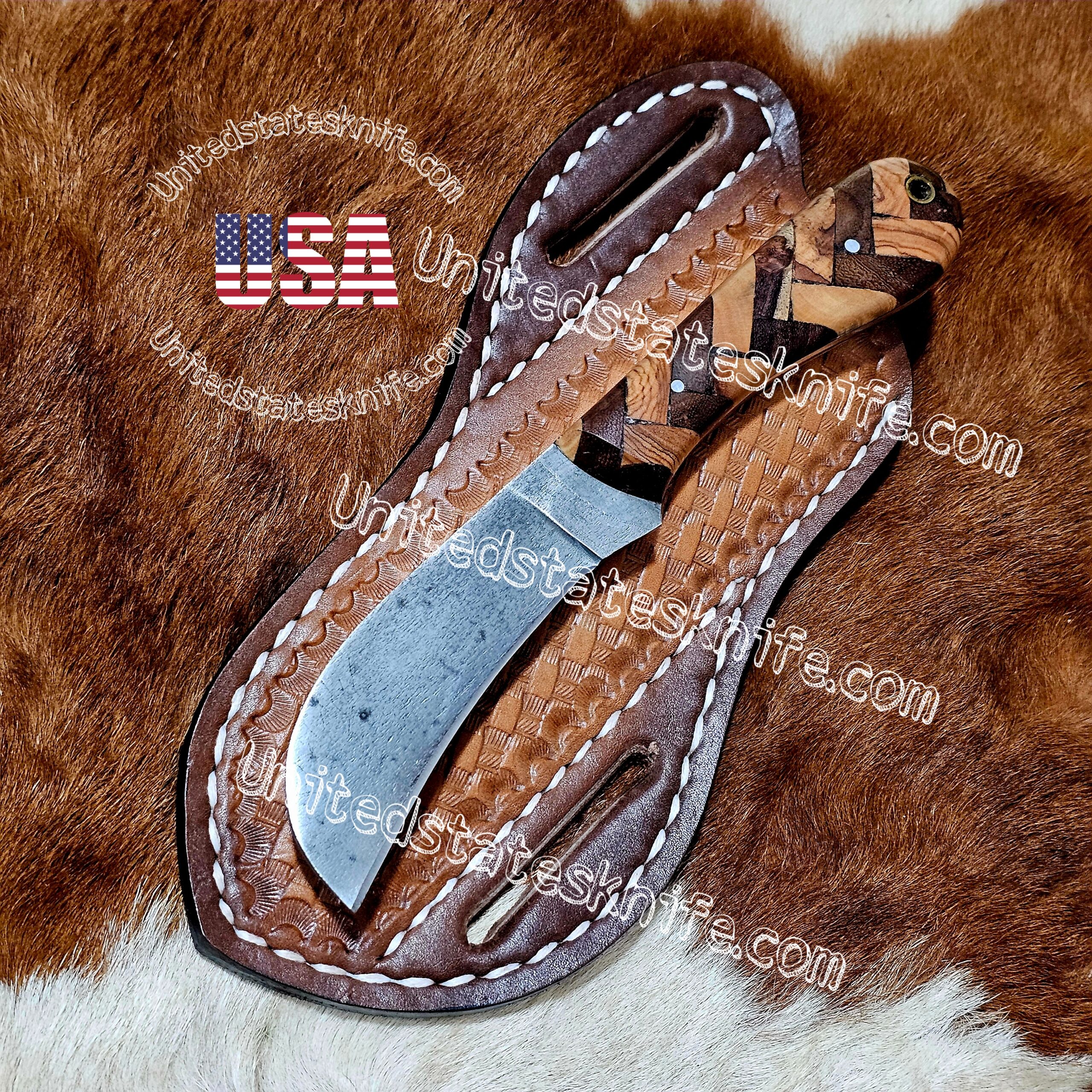 Custom handmade 1095 steel hawkbill and skinner knife.overall length 8″inches.Handle Made of olive wood.also comes with leather sheath.sharp edges and still long time… I’m also take custom orders…