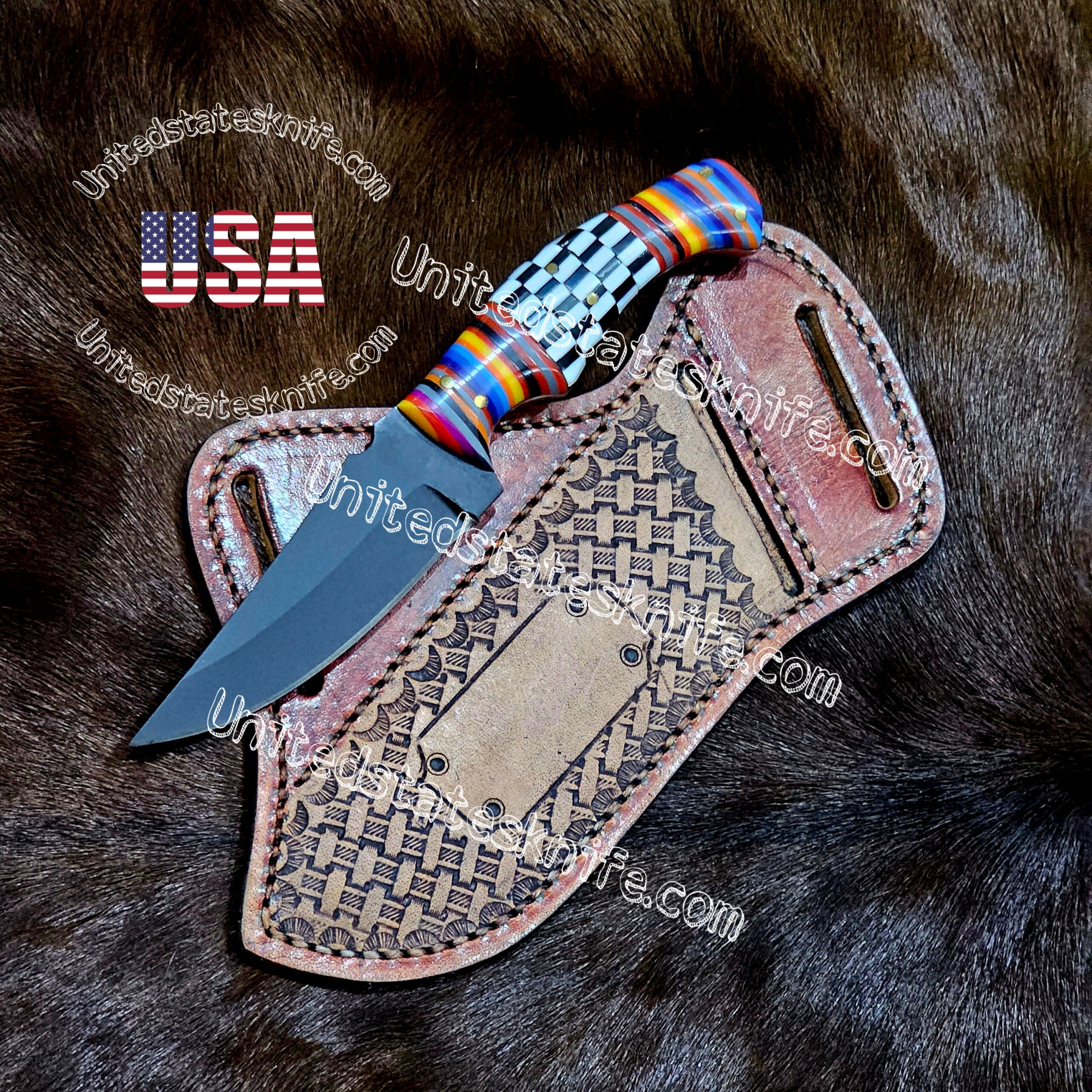 Custom handmade 1095 steel and skinner knife.overall length 8″inches.Handle Made With Resin.also comes with leather sheath.sharp edges and still long time… I’m also take custom orders…