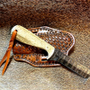 Custom handmade Damascus Steel cowboy bull cutter Knife.overall length 8inches.handle made of Stag horn.also comes with leather Sheath.sharp edges and still long time.