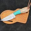 Custom handmade Damascus Steel cowboy skinner Knife.overall length 8″inches.also comes with leather Sheath.sharp edges and still long time.